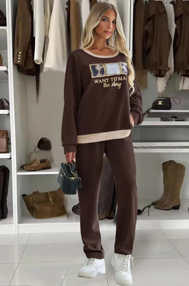Pull Maille Doux Col Rond à Broderie Fleurs